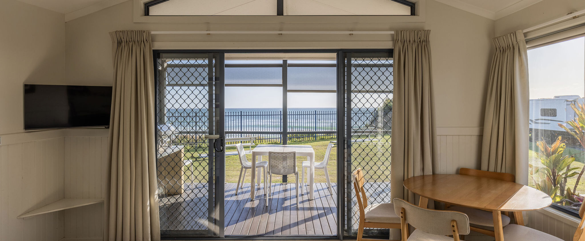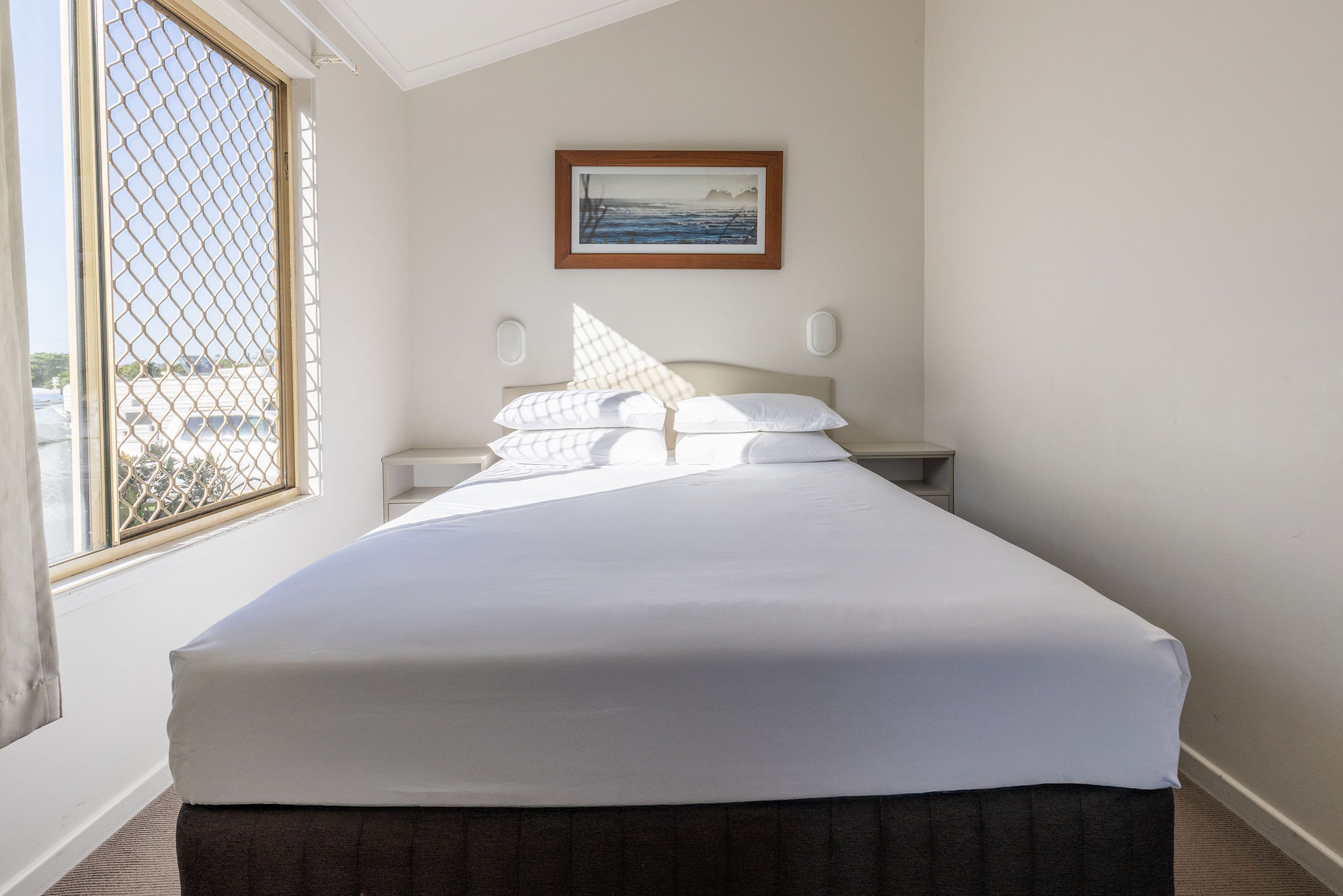 We have four Starfish Cabins available. The main bedroom has a Queen size bed, the second bedroom has two single bunk beds.