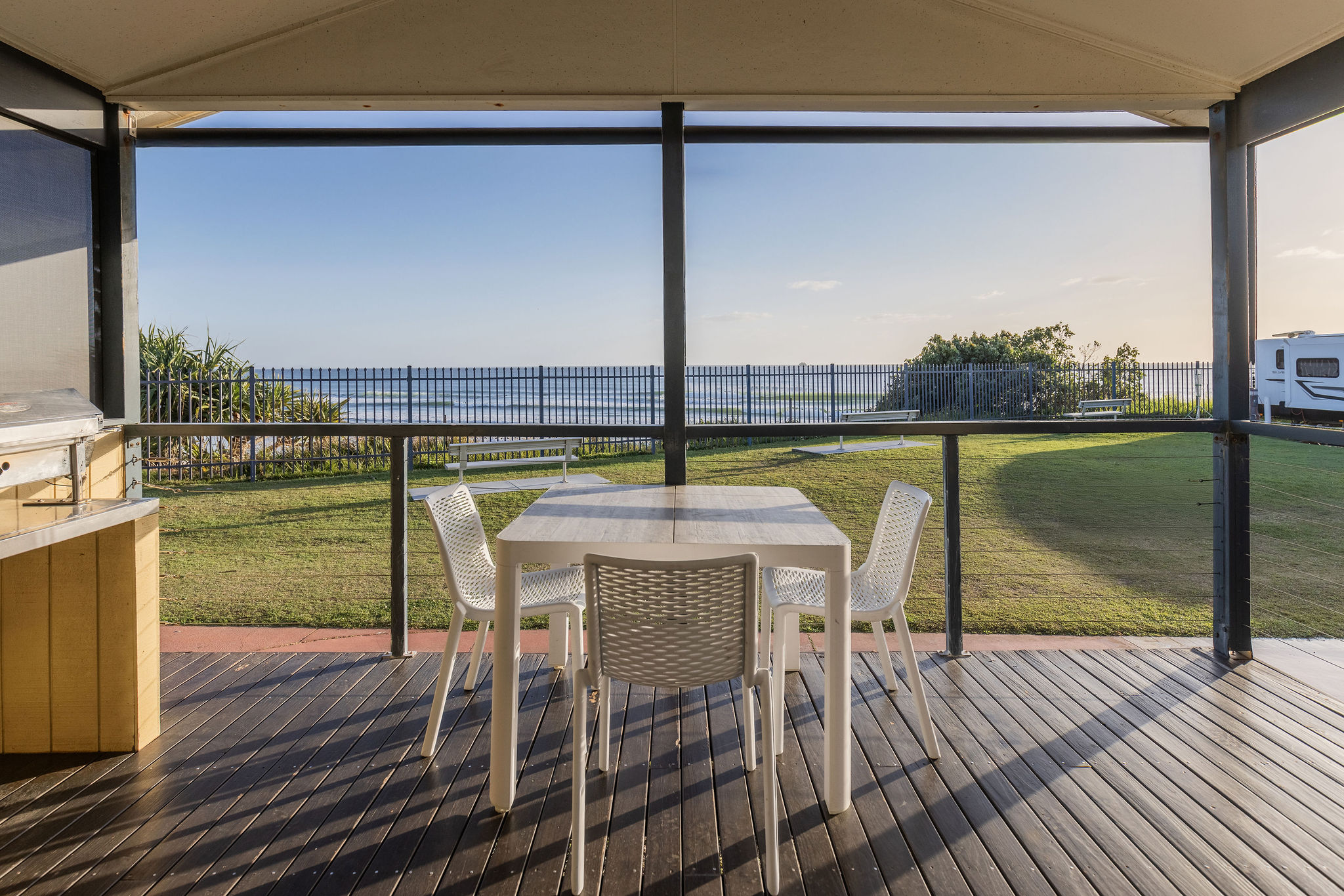 - Deck, outdoor setting and electric BBQ