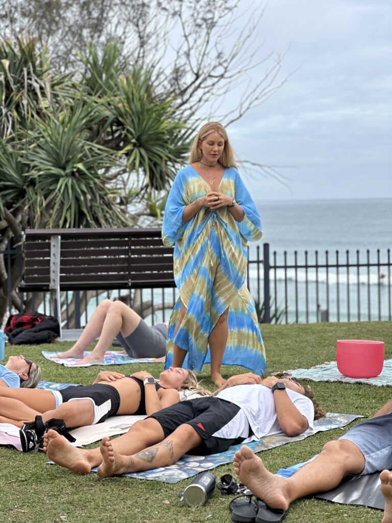 Guests were invited to decompress and reconnect through guided breathwork while surrounded by the natural calm of the coastline.